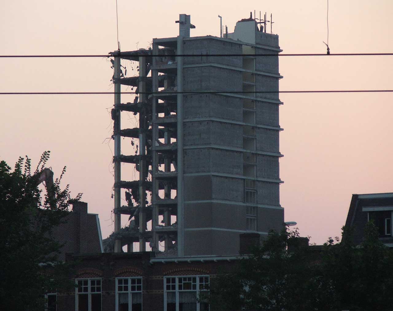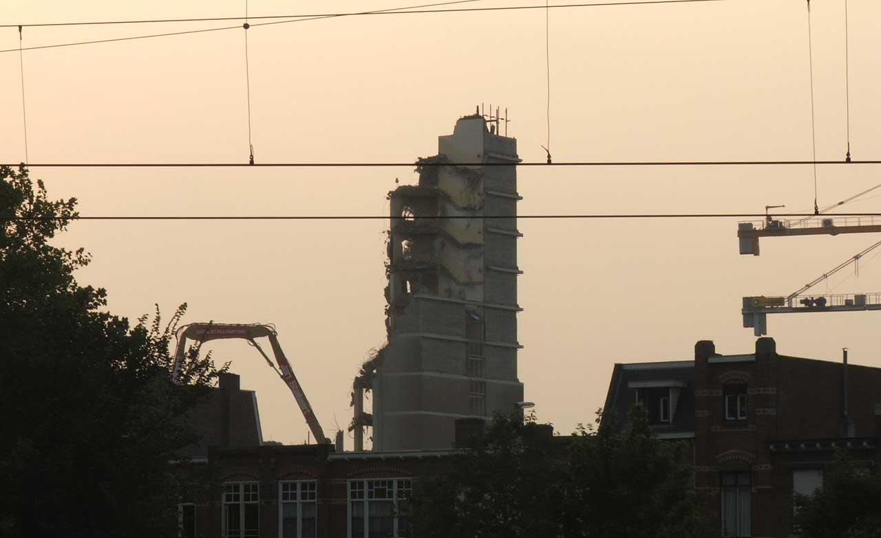 | de teloorgang van de Luzerna flat een puist die de horizon van mijn woonplaats te lang heeft vervuild te lang heeft leeggestaan en toen er ooit sprake van was om er een woontoren van te maken van een dusdanige kwaliteit bleek te zijn, dat dit onmogelijk was kortom, mijn inziens, een synoniem voor kapitaalvernietiging | ||||||||||||||||||||||||